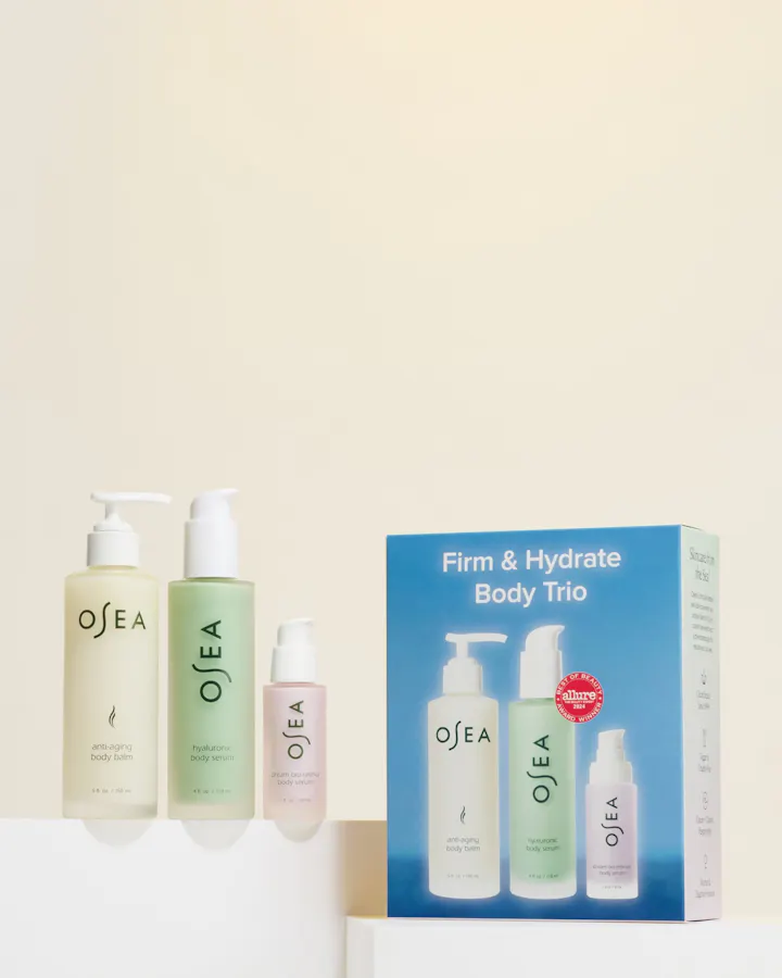 Our high-performance, award-winning hydrating serum delivers 24 hours of multi-surface hydration, while our overnight firming serum visibly firms and smooths the look of lines & wrinkles as you sleep. Finish with our age-defying body balm, which visibly improves elasticity for a radiant, lit-from-within finish.